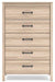 Transform your bedroom into an instant sanctuary. Pairing the look of oak grain with a unique chevron pattern, this chest of drawers introduces a touch of mid-century modern style that's sure to elevate your space. Catering to your busy lifestyle, this chest is ready to assemble in the comfort of your home.