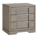 Introducing the Kelis 3-Drawer Nightstand with USB in Grey, a contemporary collection that combines modern design with functionality. Featuring an elegant grey color, this nightstand is perfect for those looking to create a sleek and sophisticated atmosphere. It showcases inset panel fronts, adding visual interest and depth to the furniture. Silver metal handles add a subtle touch of modern, while the top drawer is lined with grey felt for added protection of your belongings. A dust-proofing bottom layer further guarantees that your items stay clean and well-maintained. In this modern age, the included USB outlet will conveniently keep your devices charged within arm's reach, without any hassle or clutter. Experience contemporary elegance and practicality with the Kelis Nightstand in Grey. Features: • USB Outlets • Inset Panel Drawer Fronts • Silver Metal Handles • Top Drawer Grey Felt • Dust-Proofing Bottom Layer • Contemporary Style • Anti-Tipping Kit Included • 28"W x 20"D x 28"H • Due to lighting, product color may slightly vary from images. Dimensions: Depth: 20.0" x Width: 28.0" x Height: 28.0" Weight: 61.0 lbs.
