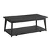 The Libby showcases sleek profiling and mid- century tapered legs. This set includes one coffee table and two end tables. Crafted of rubberwood and manufactured woods. The open shelf design on the coffee table is perfect for your favorite decor pieces, magazines, remotes, blankets, and so on. This table set fits well into contemporary or rustic home styles. Features: • Includes One Coffee Table and One End Table • Lower Shelf at Coffee Table • Finished in Rich, Black • Easy Assembly • Ships in One Box Dimensions: Depth: 46.0" x Width: 70.0" x Height: 41.0" Weight: 87.0 lbs.