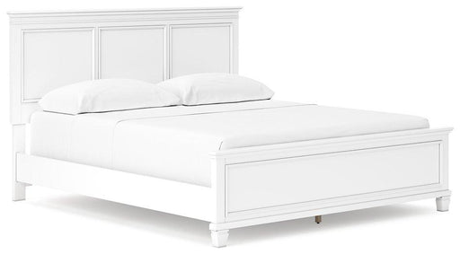 With its clean-lined look and modern attitude, this queen panel bed is a fresh style awakening. A crisp, white hue over subtle replicated wood grai...