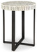 Understatedly cool in its construction, this accent table adds a subtle sense of edginess to your modern decor. Its bone inlay in cream and black creates visual intrigue on the top, balanced out by the sleekly styled black base.