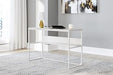 Bring your vision of a modern home workspace to life with this sleekly designed home office desk. Its linear construction and white finish keep things minimal. A small shelf along the back rounds out the versatile, striking desk.