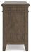 Make a style statement with this home office credenza. Its traditional design is updated with an on-trend weathered gray finish and wire-brushed texture. The credenza's open storage and adjustable shelving add up to a well-organized workspace.